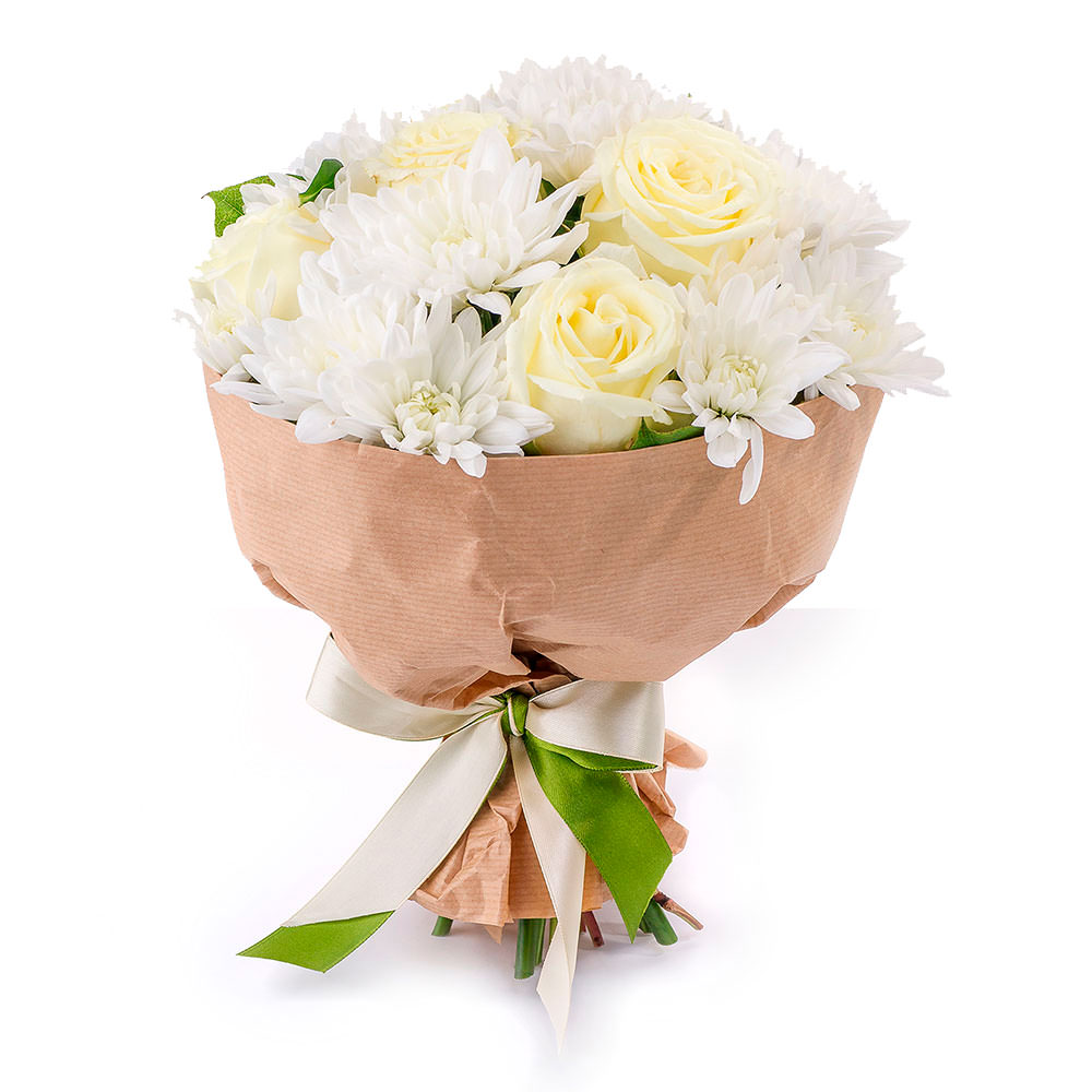 На фото представлен образец. Объем букета зависит от выбранного вами размера. Точное количество цветов и цветовую гамму вы можете уточнить у менеджера по телефону.